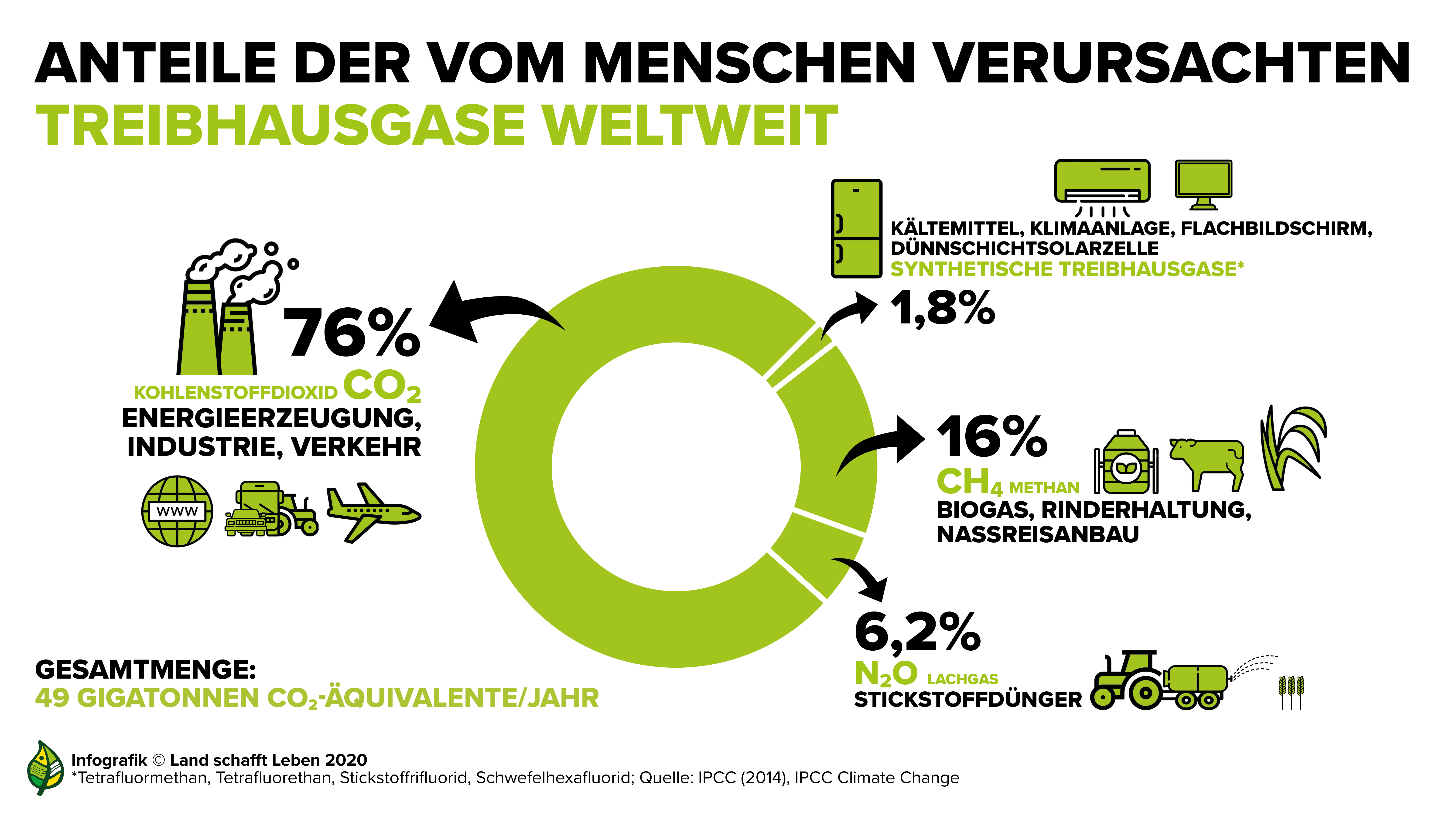 Österreichs Landwirtschaft wird oft als Positivbeispiel im Klimawandel kommuniziert, an dem sich andere EU-Länder orientieren können. Tatsächlich nimmt sie eine zentrale Rolle als Kohlenstoffspeicher ein. Die Böden des Grünlands und der Äcker und auch die Wälder speichern etwa dreimal so viel CO2 wie in der gesamten österreichischen Landwirtschaft ausgestoßen werden. Seit 1990 ist der Ausstoß zudem um 13 Prozent gesunken. Gemessen wird der Ausstoß in CO2-Äquivalenten. Der klimaschädliche Effekt anderer Gase wie zum Beispiel Methan oder Lachgas wird so mit dem von CO2 gleichgesetzt und vergleichbar gemacht.
