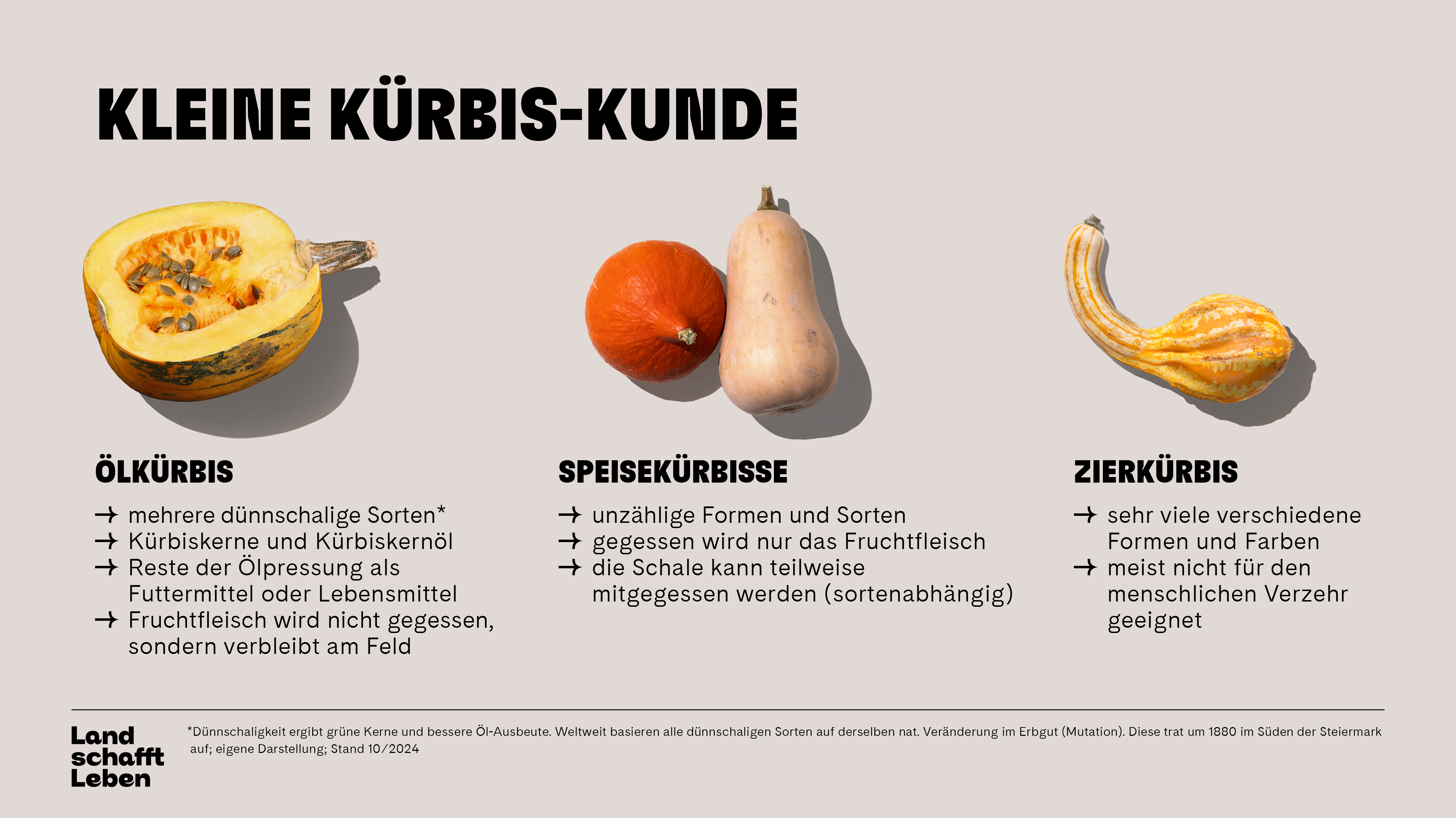 Aus Kernen von Speisekürbissen kann kein Kernöl hergestellt werden, Zierkürbisse eignen sich nur zum Dekorieren. Der geschnitzte Halloweenkürbis hingegen ist meistens essbar.