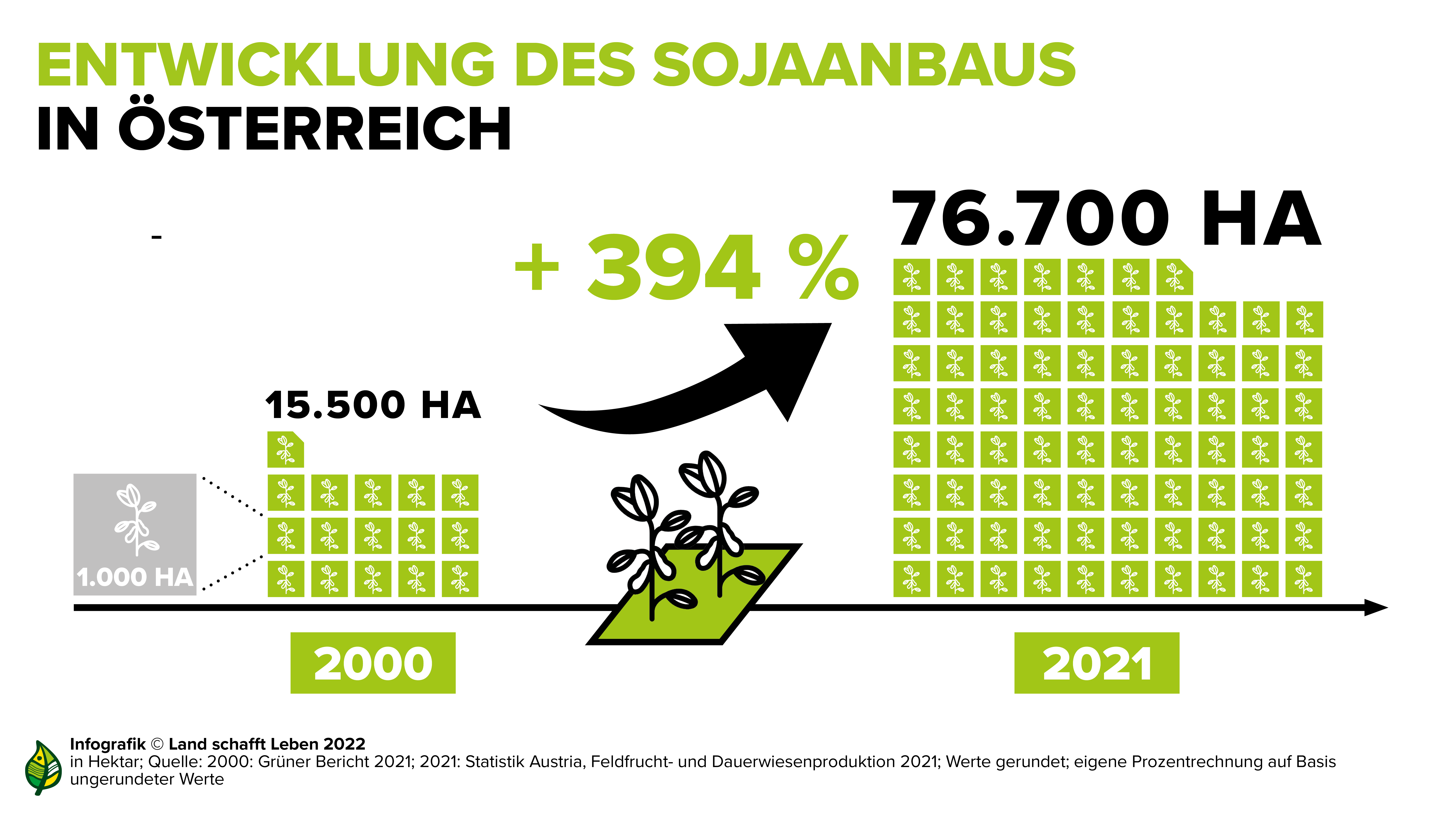 Die Sojabohne hat in Österreich eine steile Karriere hinter sich: In den vergangenen Jahren ist die Sojafläche hierzulande deutlich gewachsen und belegt mittlerweile nach Mais, Weizen und Gerste Rang 4 der Anbaufläche. Derzeit ist für den Sojaanbau in Österreich von einer vergleichsweise guten wirtschaftlichen Rentabilität auszugehen. Heuer könnte dem heimischen Sojaanbau besondere Bedeutung zukommen: Der Krieg in der Ukraine treibt unter anderem den Einkaufspreis für Soja-Futtermittel in die Höhe. An der Börse in Wien wurde GVO-freier Sojaschrot Mitte März um einen zwischenzeitlichen Höchstwert von rund 800 Euro die Tonne gehandelt. Zum Vergleich: Im Durchschnitt der Jahre 2018 bis 2021 lag dieser bei ungefähr 450 Euro. Bäuerinnen und Bauern können zudem durch den nicht notwendigen Einsatz von Stickstoffdünger bei Soja weitere Ausgaben einsparen.