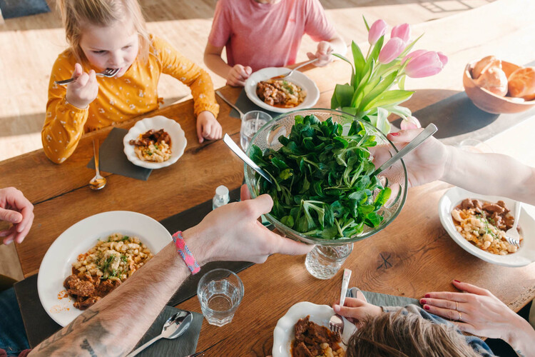 Besonders wichtig ist hier das Beobachtungslernen. Kinder lernen, indem sie ihre Vorbilder beobachten und in Folge imitieren. Auch der soziale Aspekt der Nahrungsaufnahme spielt eine bedeutende Rolle: Eltern können die Ernährungsgewohnheiten ihrer Kinder nachhaltig prägen, indem sie gesunde Routinen etablieren. Ist beispielsweise Salat fester Bestandteil jedes Abendessens, entwickeln Kinder die Gewohnheit, gesundes Essen als selbstverständlich zu sehen. Mit der Zeit gewöhnen sie sich an diese Regelmäßigkeit und beginnen früher oder später, selbst danach zu verlangen – einfach, weil es zu ihrer Normalität gehört. Werden solche Muster vorgelebt, haben sie einen starken positiven Einfluss auf die Einstellung der Kinder zu Lebensmitteln, die sie später auch ins Erwachsenenleben mitnehmen.