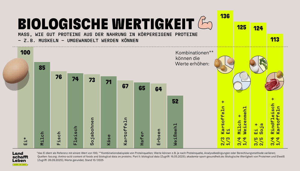 Die biologische Wertigkeit und die Proteinqualität verschiedener Lebensmittel
