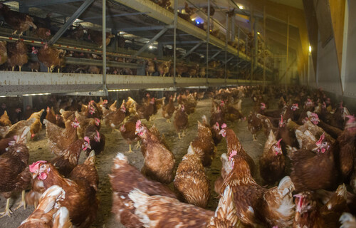 Bodenhaltung mit wenig natürlichem Licht und ohne Auslauf