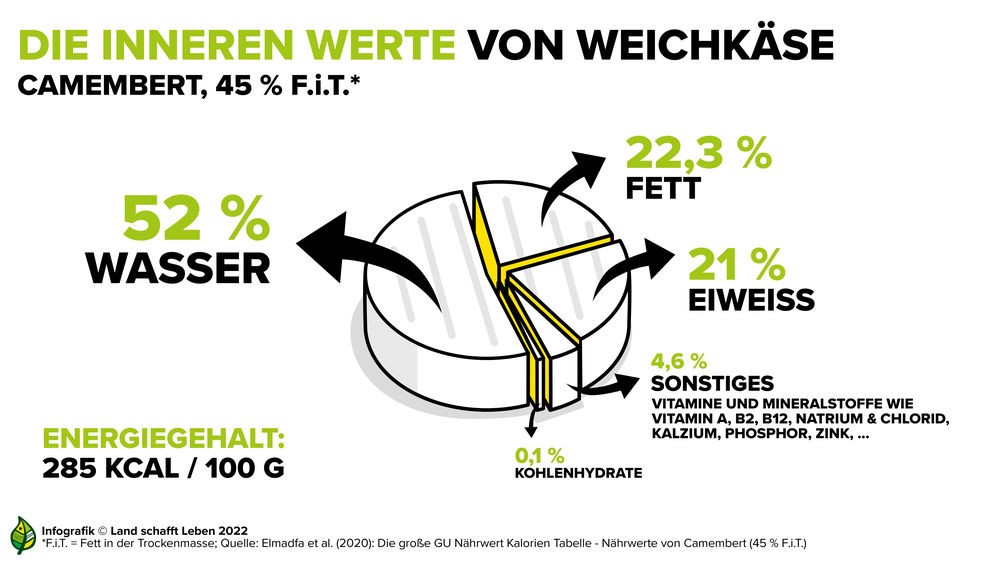 Was für die Konsumentinnen und Konsumenten ein wenig umständlich erscheinen mag, hat durchaus seinen Sinn: Käse reift immer weiter – auch wenn er schon längst nicht mehr in der Käserei ist, sondern bereits im Supermarkt oder bei uns zu Hause im Kühlschrank. Bei der Reifung verdunstet Wasser. Würde also der absolute Fettgehalt angegeben, stimmte dieser bald nicht mehr, da sich das Gewicht des Käses verändert. Der Fettanteil in der Trockenmasse hingegen bleibt immer gleich.