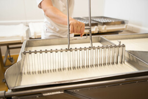 Nun befinden wir uns in der Käserei, wo die Milch zum Käse weiterverarbeitet wird. Inwiefern zunächst die Milch verarbeitet wird, wie sie zur Gerinnung gebracht wird und weshalb dem Reifungsprozess besondere Bedeutung zukommt, erfährst du hier.