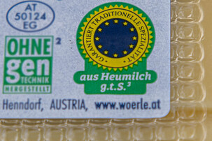 Wo kommt die Milch im Käse her? Bei Käse muss die Herkunft der Rohstoffe, sprich in erster Linie der Milch, nicht gekennzeichnet werden. Viele heimische Betriebe geben allerdings freiwillig an, woher die eingesetzte Milch kommt. Fast die gesamte österreichische Käsepalette ist mit dem AMA-Gütesiegel gekennzeichnet – und somit zum Einsatz von heimischer Milch verpflichtet. Zudem ist bei ursprungsgeschütztem Käse – beispielsweise bei Vorarlberger oder Tiroler Bergkäse – das geografische Gebiet, aus dem die Milch bezogen werden darf, genau vorgegeben.