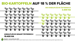 Österreich versorgt sich zu 86 Prozent selbst mit Kartoffeln. Im Vergleich zu anderen Gemüsearten wie etwa dem Paprika oder der Tomate ist der Selbstversorgungsgrad verhältnismäßig hoch. Der Kartoffelbedarf - die Inlandsverwendung - setzt sich zusammen aus dem Bedarf für Futter, Saat, menschliche Nahrung und Stärkeindustrie sowie aus Verlusten. Wein- und Waldviertel sind die bedeutendsten Kartoffelanbauregionen Österreichs. Die Weinviertler Bauern erzeugen vorwiegend Kartoffeln für den Verkauf als Frischware und für die Verarbeitung zu Kartoffelprodukten. Im Waldviertel werden eher Stärkekartoffeln und Kartoffeln für die Saatgutvermehrung angebaut. Österreichs Bio-Kartoffel-Anteil ist wie bei vielen anderen landwirtschaftlichen Kulturen eine Besonderheit. Da die Österreicher nicht so viele Bio-Kartoffeln kaufen wie angebaut werden, wird etwa die Hälfte der Bio-Ernte exportiert.