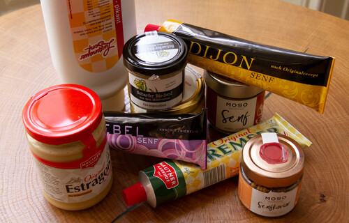 Vor allem der Dijon-Senf sowie österreichische Spezialsenfe sind in Glas verpackt. Glas wird oft als Qualitätszeichen angesehen, was Marketingabteilungen gerne für ihre Produkte nutzen. Laut Katrin Segel, Geschäftsführerin von Ramsa, hat die Verpackungswahl aber nicht nur marketingtechnische Gründe, sondern auch pragmatische: “Es gibt Spezialsenfe – beispielsweise mit Apfelstücken veredelt –, die man nicht in Tuben füllen kann. Die Apfelstücke würden alles verstopfen und Konsumentinnen und Konsumenten würden den Inhalt nicht mehr aus der Tube kriegen. Da ist Glas sinnvoller.”