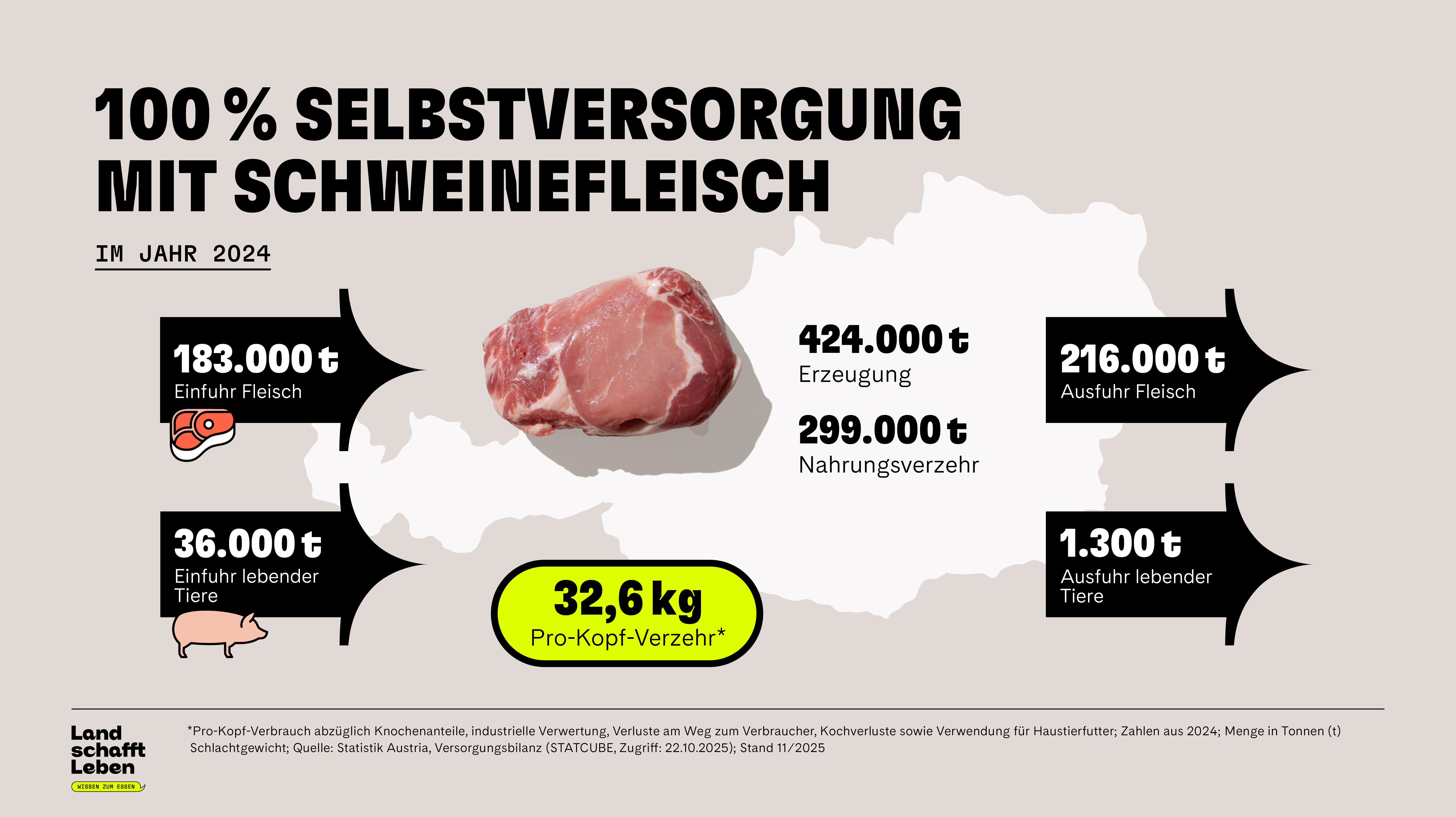 Österreich kann sich größtenteils selbst mit Schweinefleisch versorgen. © Land schafft Leben