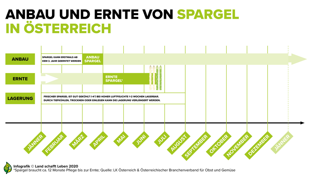3/4 des österreichischen Spargels kommen übrigens aus Niederösterreich, das Hauptanbaugebiet ist das Marchfeld. Der jährliche Pro-Kopf-Konsum von Spargel liegt hierzulande bei 0,5 kg, zu etwa 50 Prozent können wir uns selbst mit heimischem Spargel versorgen (2022/23).
