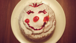 Für die Glasur einen Esslöffel Zitronensaft in eine Schüssel geben und so viel Staubzucker unterrühren, bis die Glasur zähflüssige Konsistenz hat. Je mehr Zitronensaft ihr verwendet, desto mehr Zucker braucht ihr dazu. Die Menge, die ihr braucht, kommt natürlich auf die Größe eures Kuchens an.