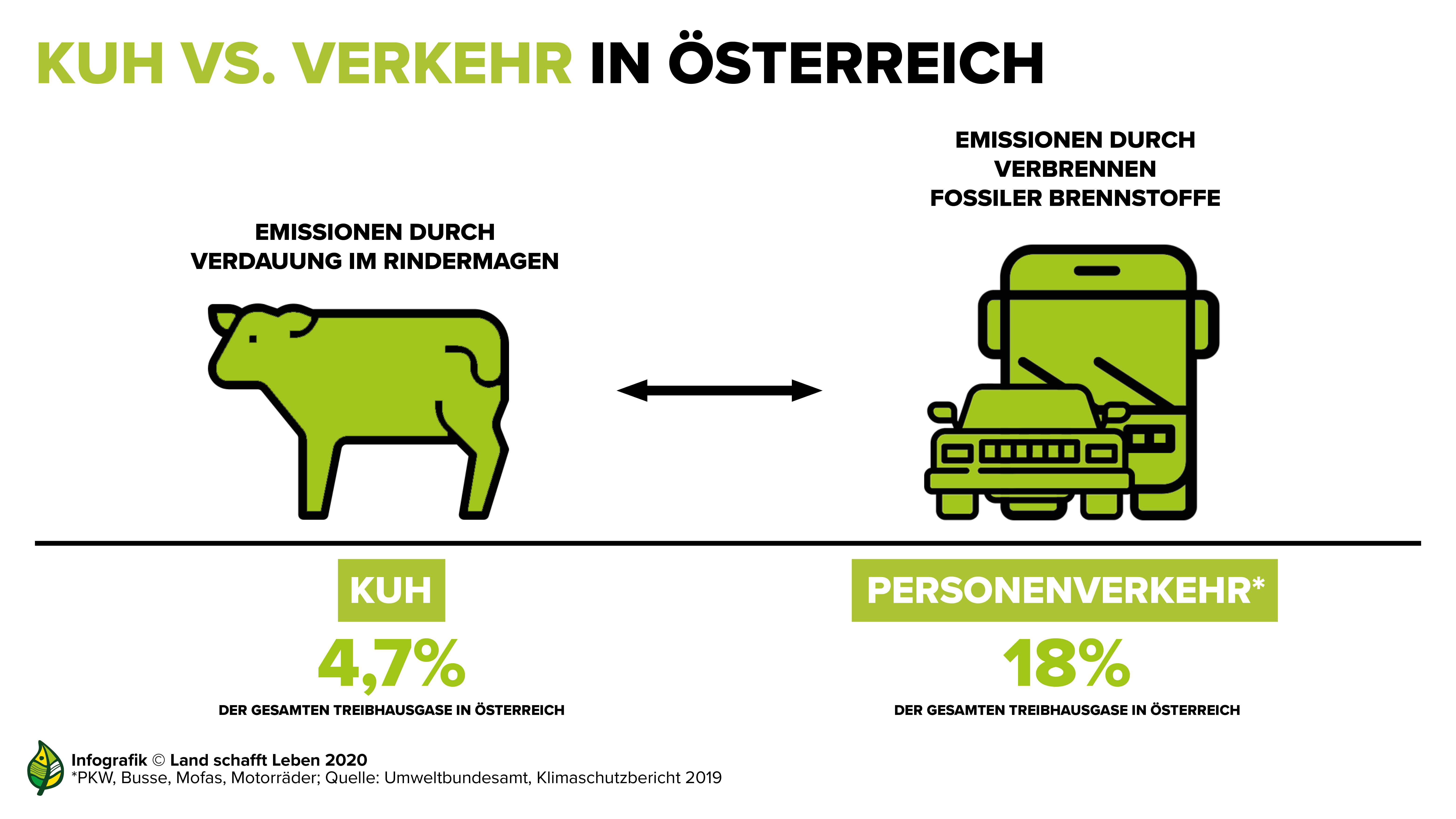 Österreichs Landwirtschaft wird oft als Positivbeispiel im Klimawandel kommuniziert, an dem sich andere EU-Länder orientieren können. Tatsächlich nimmt sie eine zentrale Rolle als Kohlenstoffspeicher ein. Die Böden des Grünlands und der Äcker und auch die Wälder speichern etwa dreimal so viel CO2 wie in der gesamten österreichischen Landwirtschaft ausgestoßen werden. Seit 1990 ist der Ausstoß zudem um 13 Prozent gesunken. Gemessen wird der Ausstoß in CO2-Äquivalenten. Der klimaschädliche Effekt anderer Gase wie zum Beispiel Methan oder Lachgas wird so mit dem von CO2 gleichgesetzt und vergleichbar gemacht.