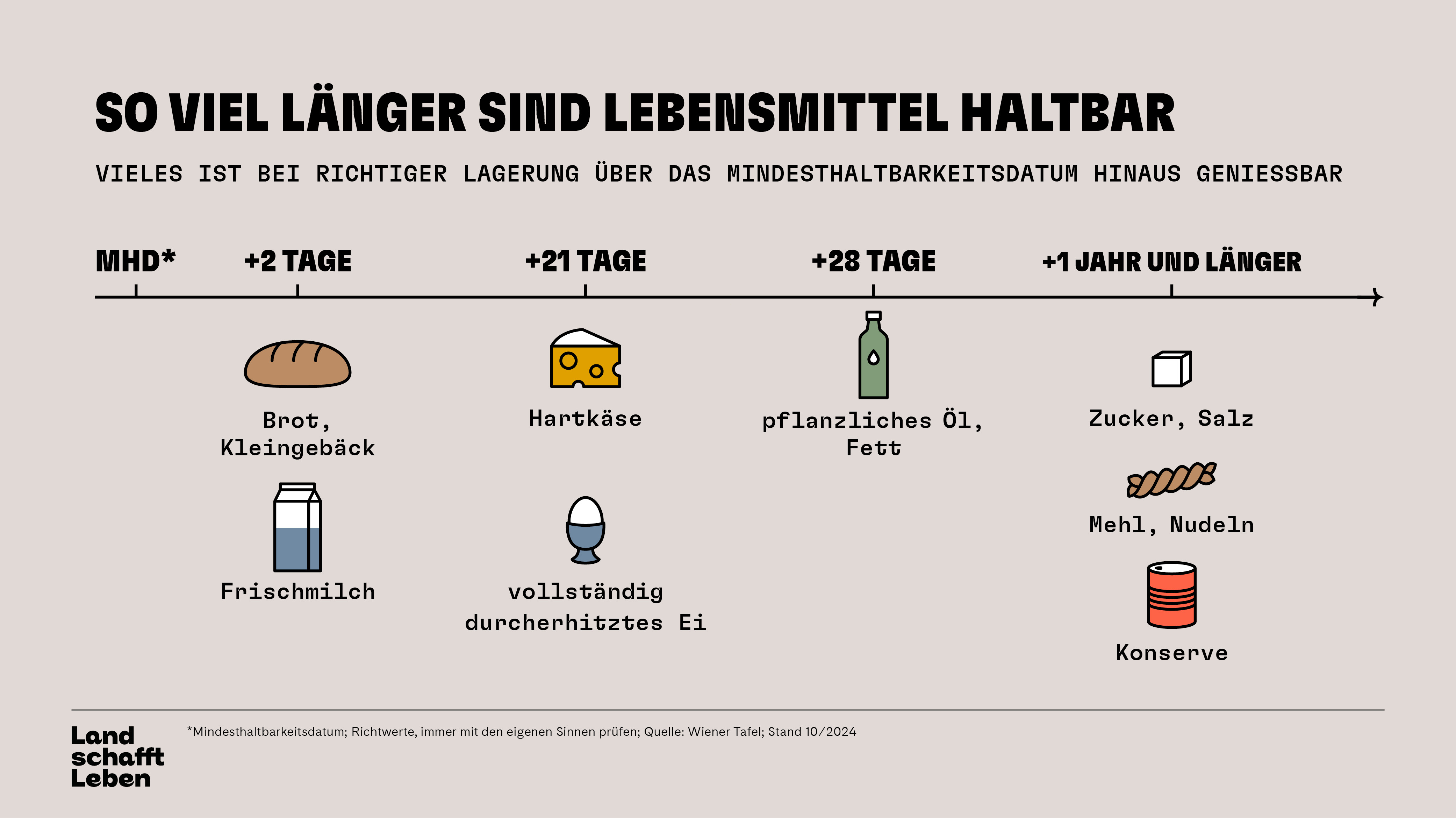 Das Mindesthaltbarkeitsdatum (MHD) bedeutet in vielen Fällen nicht, dass die Lebensmittel ab dem Datum sofort ungenießbar sind. Oft sind diese deutlich länger haltbar als angegeben. Sich auf die eigenen Sinne zu verlassen, zahlt sich hier aus.