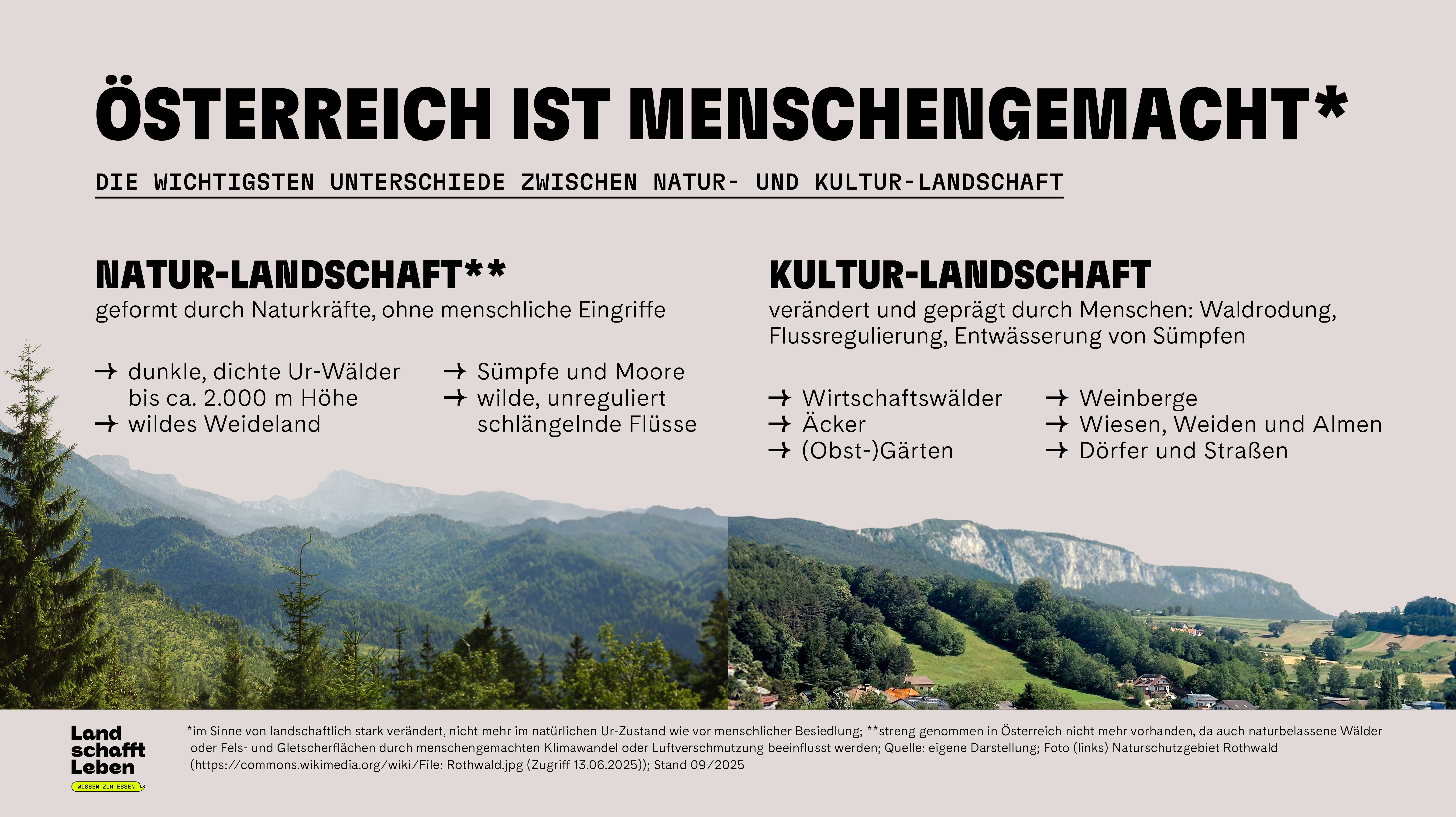 Das Aussehen und damit die Attraktivität der Landschaft sind also nicht naturgegeben. Beispiel Almen: Diese hoch in den Bergen gelegenen Weideflächen wurden von Bäuerinnen und Bauern vor Jahrhunderten durch Waldrodung und Viehwirtschaft erschaffen. Das so entstandene Landschafts-Mosaik aus Wald und Weide ist heute nicht nur Rückzugsort der Biodiversität und Bollwerk gegen Naturgefahren, es wirkt auch in ästhetischer Hinsicht. „Solche halboffenen und kleinteiligen Landschaften ziehen uns Menschen an. Wenn wir uns hier aufhalten, baut das Stress ab und kann sogar Depressionen vorbeugen“, sagt Land schafft Leben-Gründerin Maria Fanninger.