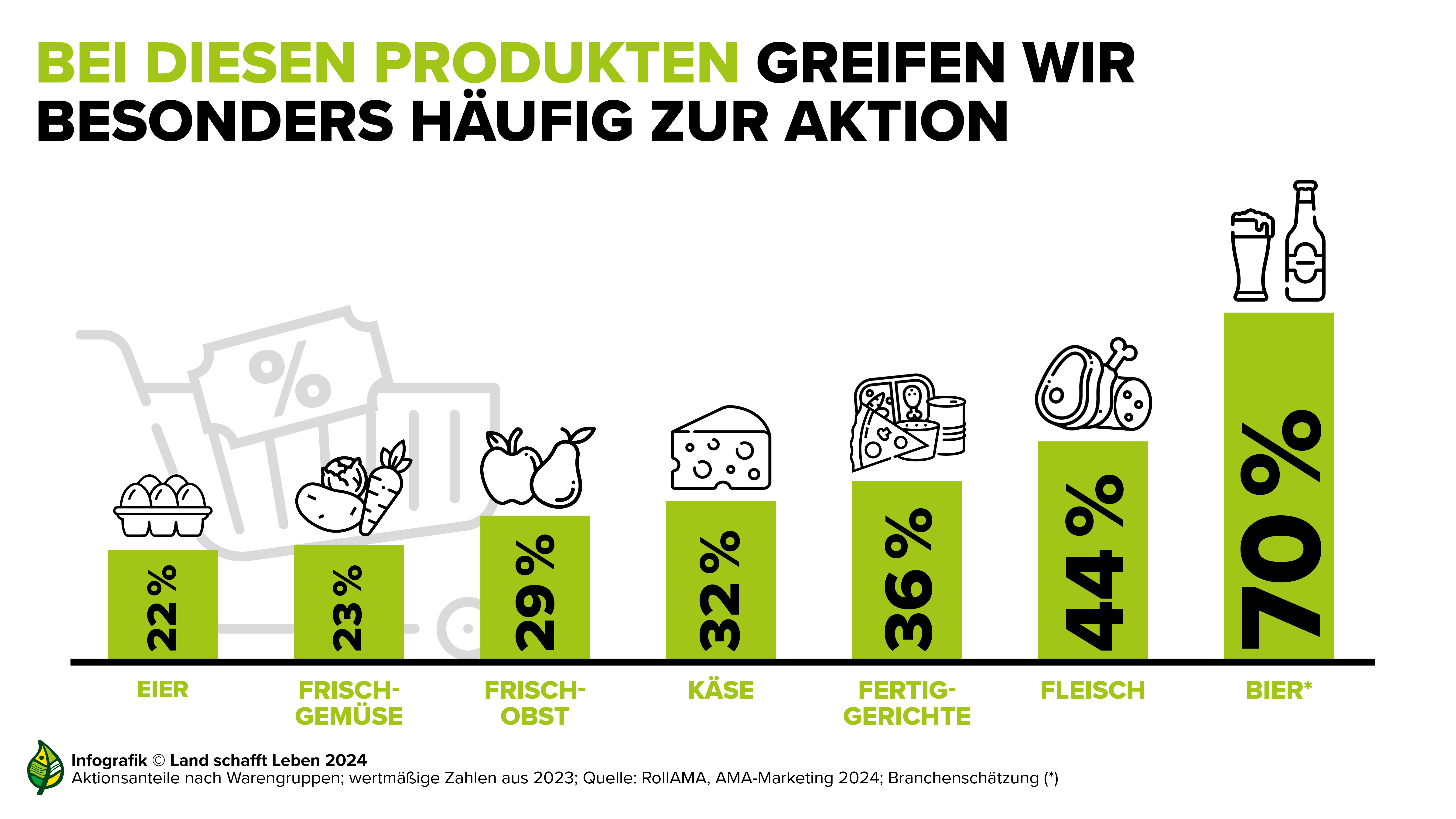 In Österreich ist der Aktionsanteil mit durchschnittlich 30 bis 40 Prozent Aktionsware im Lebensmitteleinzelhandel generell sehr hoch. Nur in Tschechien ist dieser noch höher. Die Aktionsanteile unterscheiden sich je nach Warengruppe. Höher als beim Fleisch ist dieser nur beim Bier: Laut Schätzungen werden in Österreich etwa 70 Prozent des Bieres in Aktion verkauft, Tendenz steigend. Bei Großereignissen wie aktuell der Fußball-Europameisterschaft liegt der Anteil noch höher.