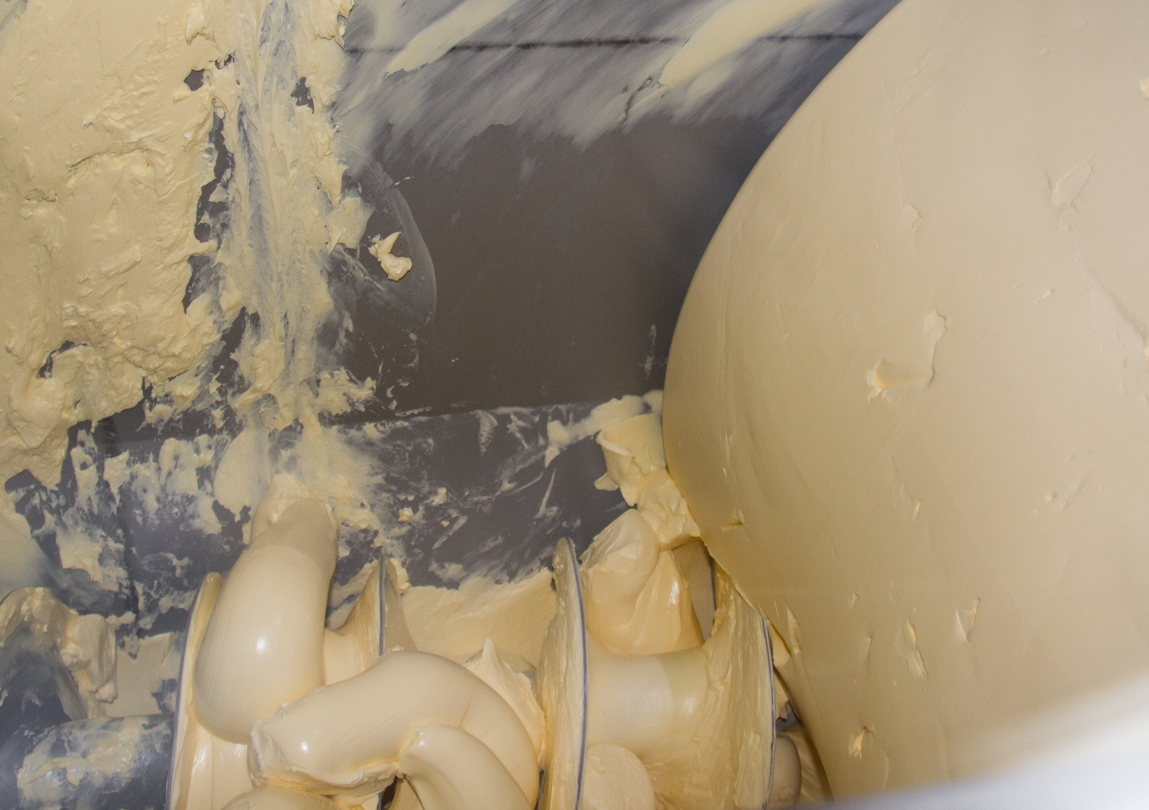 Die Molkereien arbeiten mit dem „kontinuierlichen Verfahren“ Das bedeutet vereinfacht, Rahm kommt laufend oben in die Maschine hinein und unten als Butter heraus. Butterfässer gibt es nur mehr bei Sennereien und kleineren Herstellern. Um Butter herzustellen, muss man zunächst den Rahm von der Magermilch trennen. Diese wird zu verschiedenen Milchprodukten weiterverarbeitet. Da angelieferte Milch um die vier Prozent Fett enthält, fällt in diesem Arbeitsschritt gleich ein Großteil der Milch weg. Am Ende wird von 22 bis 25 Litern Milch ein Kilo Butter übrig bleiben. Der gereifte Rahm kommt in den Butterungszylinder. Durch eine Drehbewegung entsteht das Butterkorn, das immer größer wird. Bei diesem Arbeitsschritt fällt die Buttermilch weg. Sie kann je nach Herstellungsverfahren für andere Milchprodukte oder Tierfutter verwendet werden oder muss entsorgt werden. Buttermilch, die im Lebensmitteleinzelhandel erhältlich ist, hat mit der klassischen Buttermilch aus der Butterproduktion nichts zu tun.
